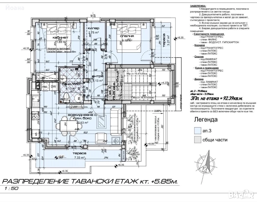 Апартаментът се състои от: