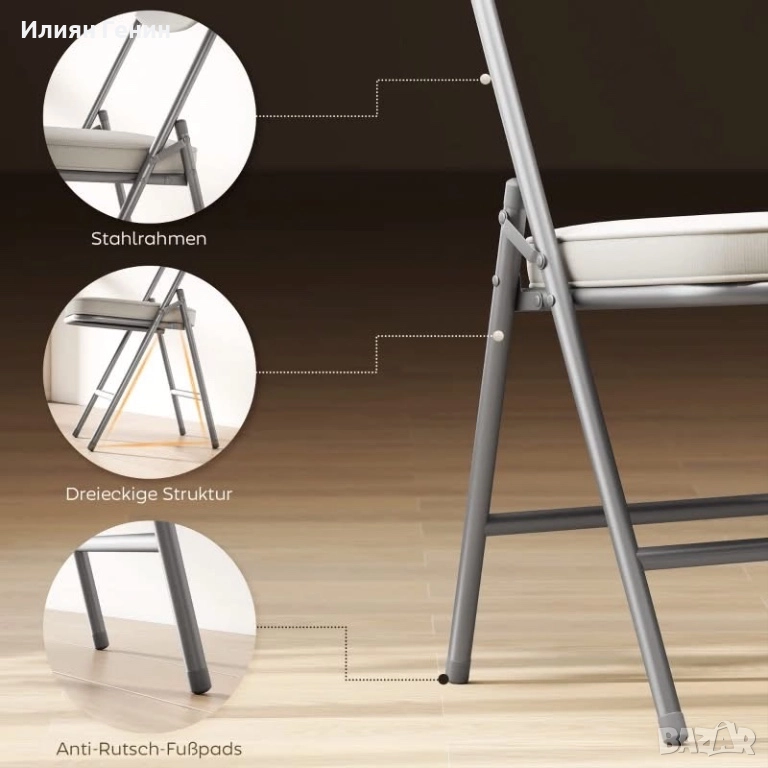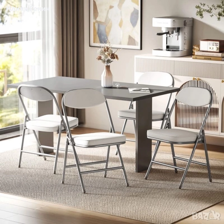 ✔ Комплект от 4 сгъваеми стола, идеални за вечери, срещи или допълнителни места за сядане