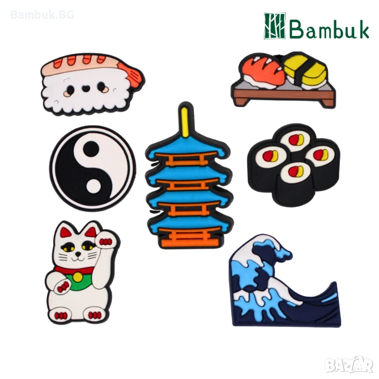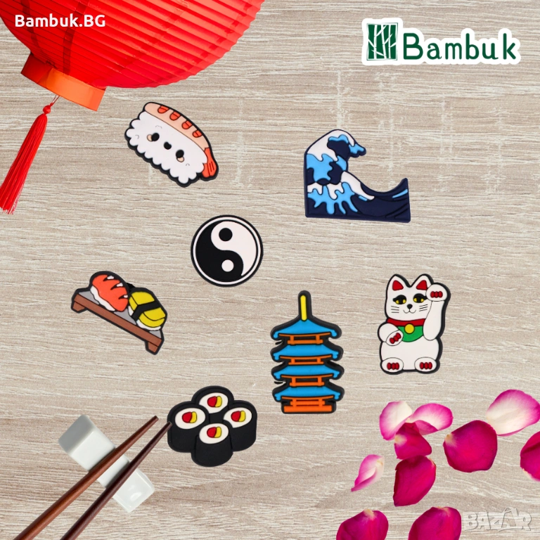 🟢 Елегантен дизайн с азиатски мотиви – суши, Хокусай