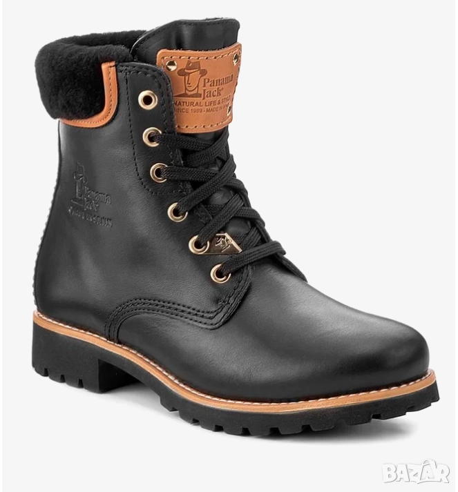 Уютни и топли ботуши с връзки и подплата от агнешка кожа от Panama Jack. Елегантният им черен дизайн със златни капси, лепенка с лого на връзките и релефно лого на марката отстрани и на езика ги правят истински привличащи вниманието. Перфектен спътник за студените зимни дни.