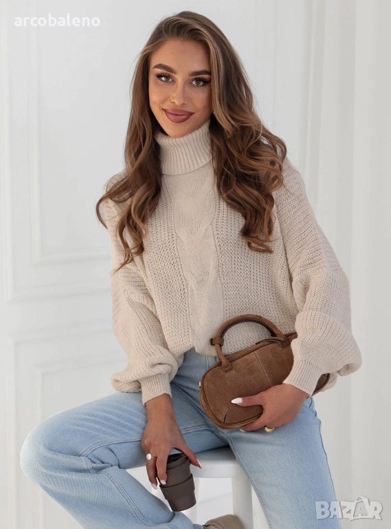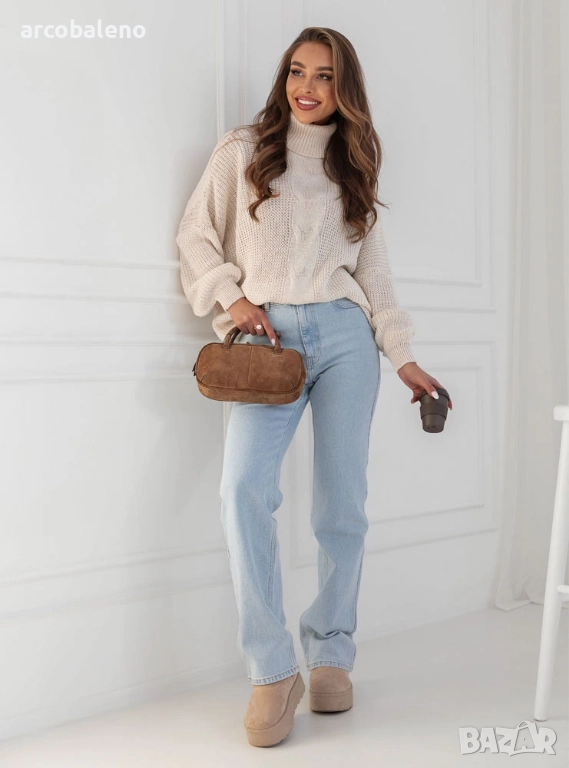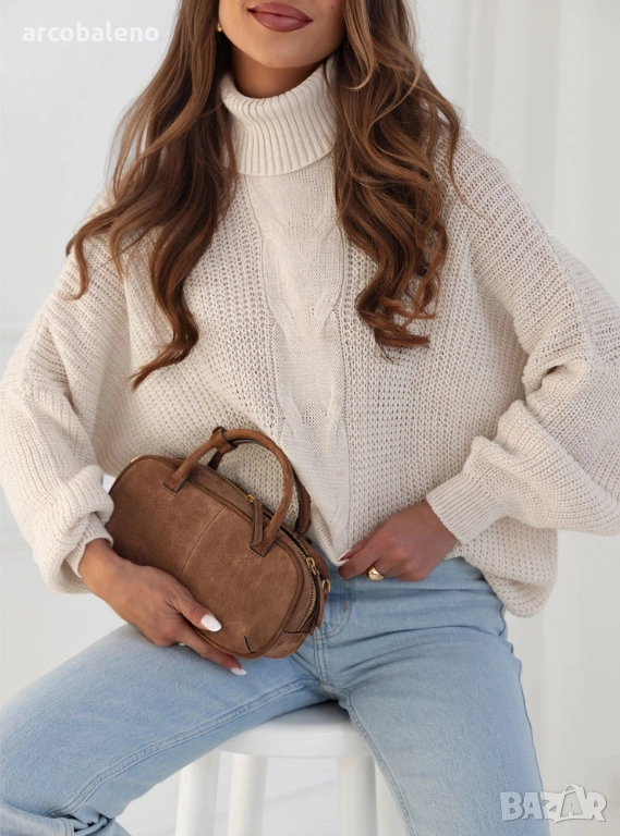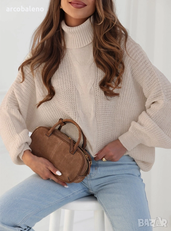 Пуловерът с голяма яка Marym е квинтесенцията на уютния стил в елегантен вариант. Неговата свободна, ежедневна кройка съчетава комфорт с модерен характер, създавайки идеален избор за по-студените дни. Нюансите добавят фин щрих и придават на пуловера особено лек и свеж вид. Този стил перфектно допълва есенно-зимния климат, обгръщайки ви с топлина и мекота. Свободната кройка подчертава небрежен, леко романтичен стил, като същевременно позволява множество опции за стилизиране. Полото му придава уютен характер и деликатна елегантност. Този пуловер може да се носи както ежедневно, така и с по-изискани тоалети. Цветът се хармонизира красиво с класическите есенни цветове - кафяво, бежово и черно, създавайки хармоничен, модерен ефект. Това е избор за жени, които ценят комфорта, стила и вечната простота в едно.