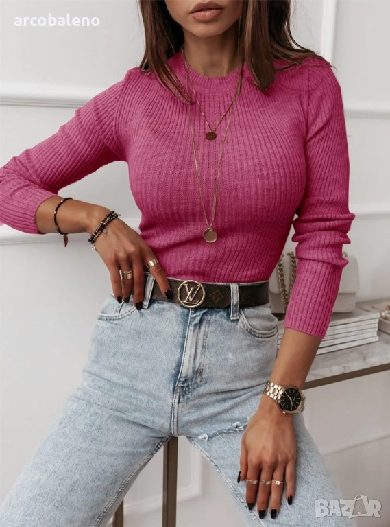 Удобният му материал ще ви осигури комфорт и ще пасне перфектно на фигурата ви. Струва си да имате този пуловер в гардероба си, тъй като може да се носи за създаване на перфектния ежедневен тоалет.
