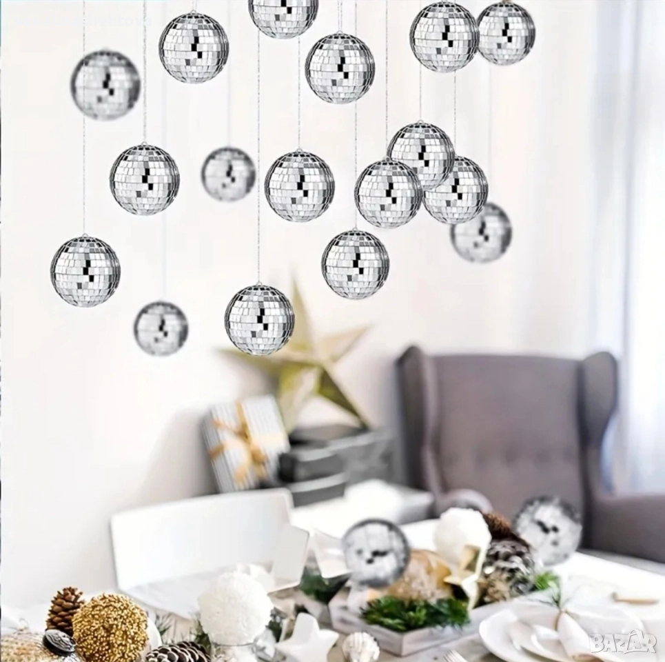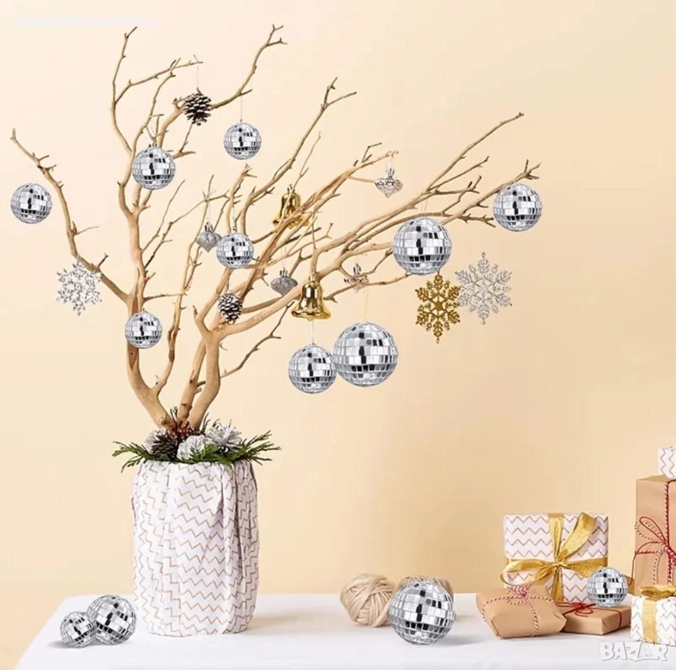 Комплект от 35 броя огледални диско топки за декорация с халка с възможност за закачане на елха.