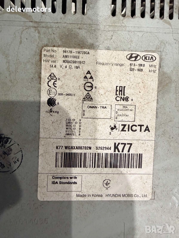 98700-1W000 radio радио, аудио система от Kia Rio 1.2i, двигател G4LA, 84 кс., скоростна кутия HA1610, 5 ск., 2017г., 84 000 km., euro 6B, Киа Рио 1.2i в автоморга Delev Motors, между с. Каменар и с. Куманово гр. Варна.