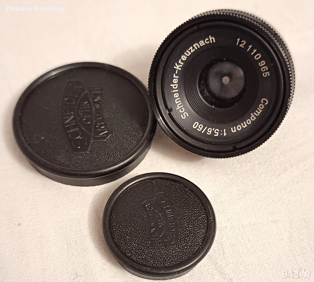 Висококачествен шестелементен увеличаващ обектив. Марката и качеството са добре познато. Използва се и за макро фотографии чрез спец. адаптери. Нов, неопотребяван в отлично състояние. Не е тестван. Марка:Schneider Kreuznach, модел:componon, фокусно разстояние 60 mm., максимална бленда f 5.6.