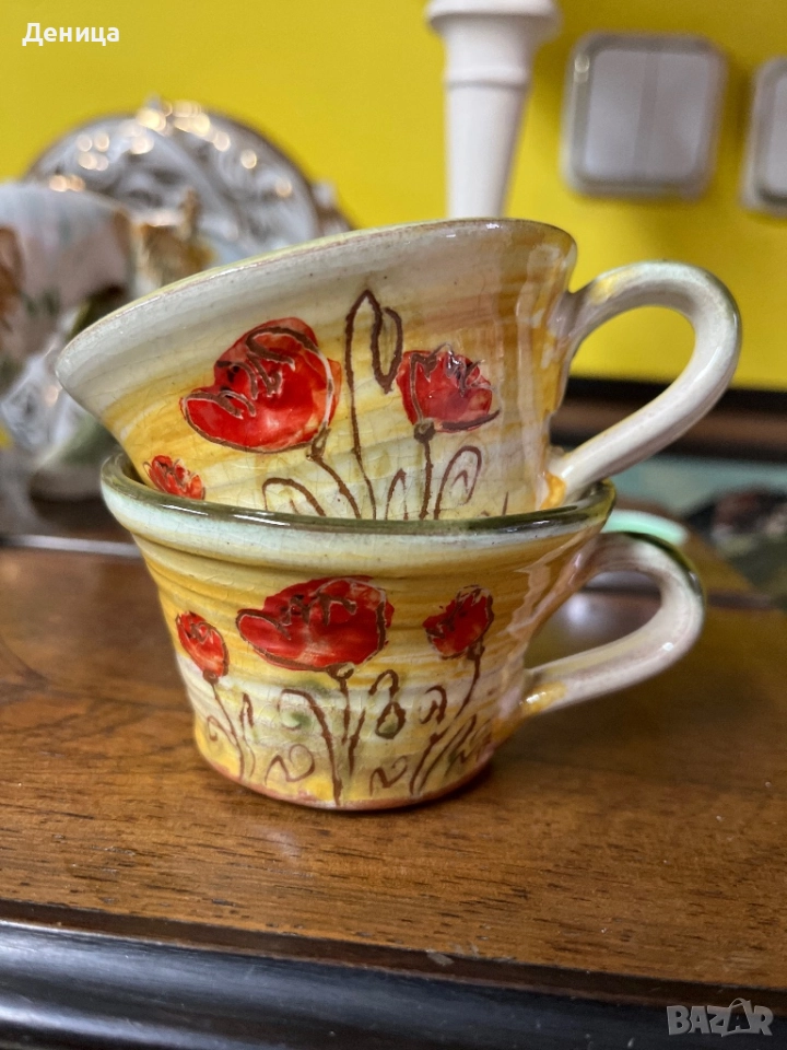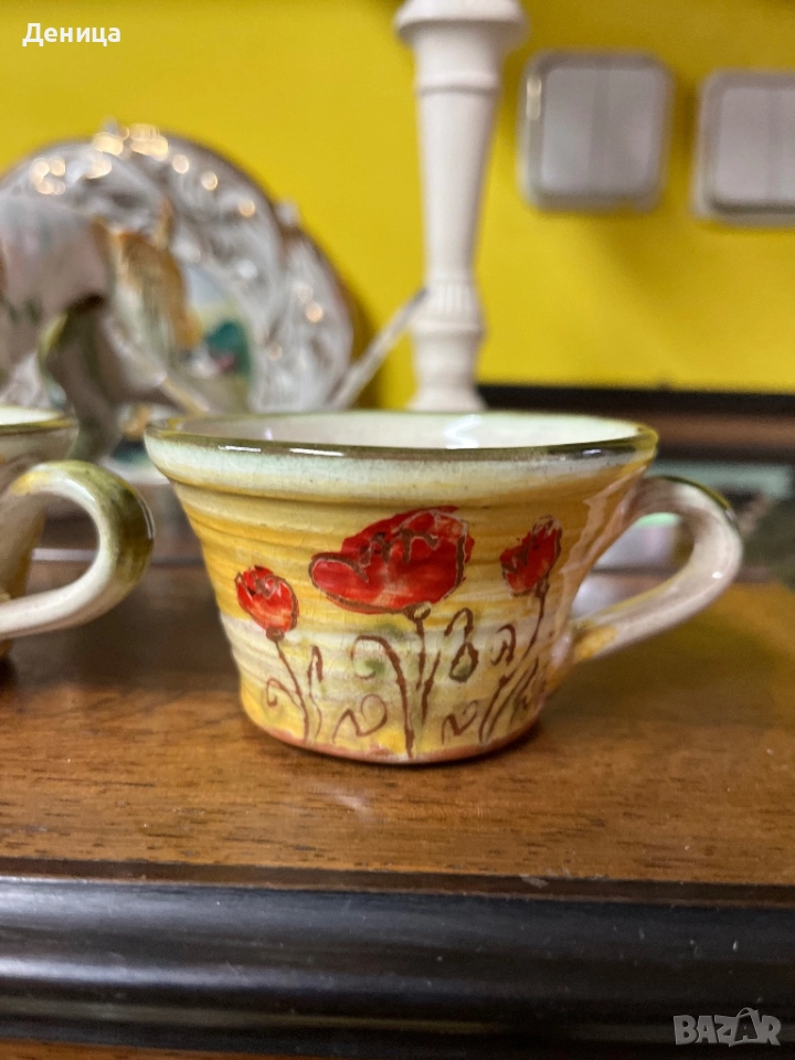 Страхотни🥰 Керамични чаши с макове за кафе Ръчна изработка-100/120 мл на око Цена-30 лв/15.34€ → Обява 52580296