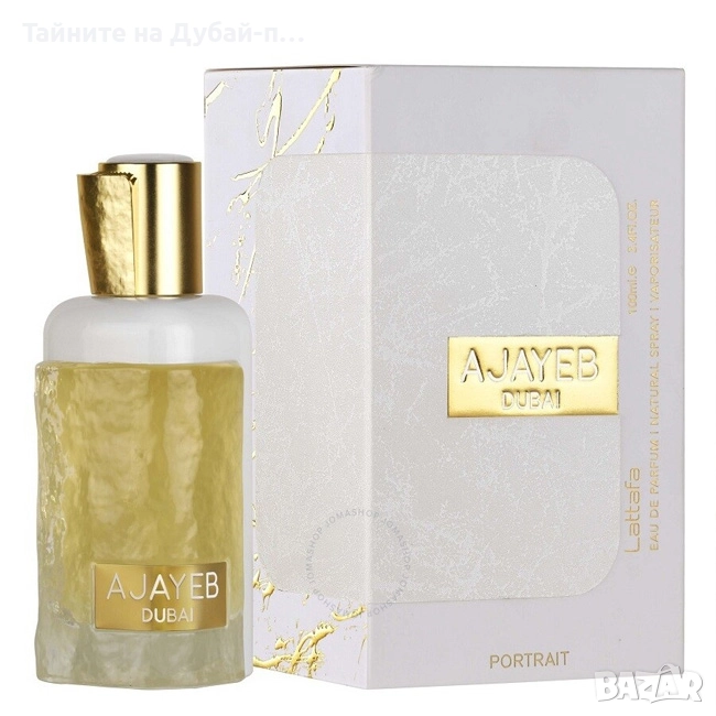 Ajayeb Dubai Portrait е унисекс аромат (Eau de Parfum) с обем 100 ml / 3.4 oz, който предлага свежо-плодов старт и дървесно-амброва база. Върховите нотки включват портокал и лимон, сърцето се състои от османтус, жасмин и манго, а базовите нотки съдържат сандалово дърво, амбра, мускус и уд (агаров дърво).