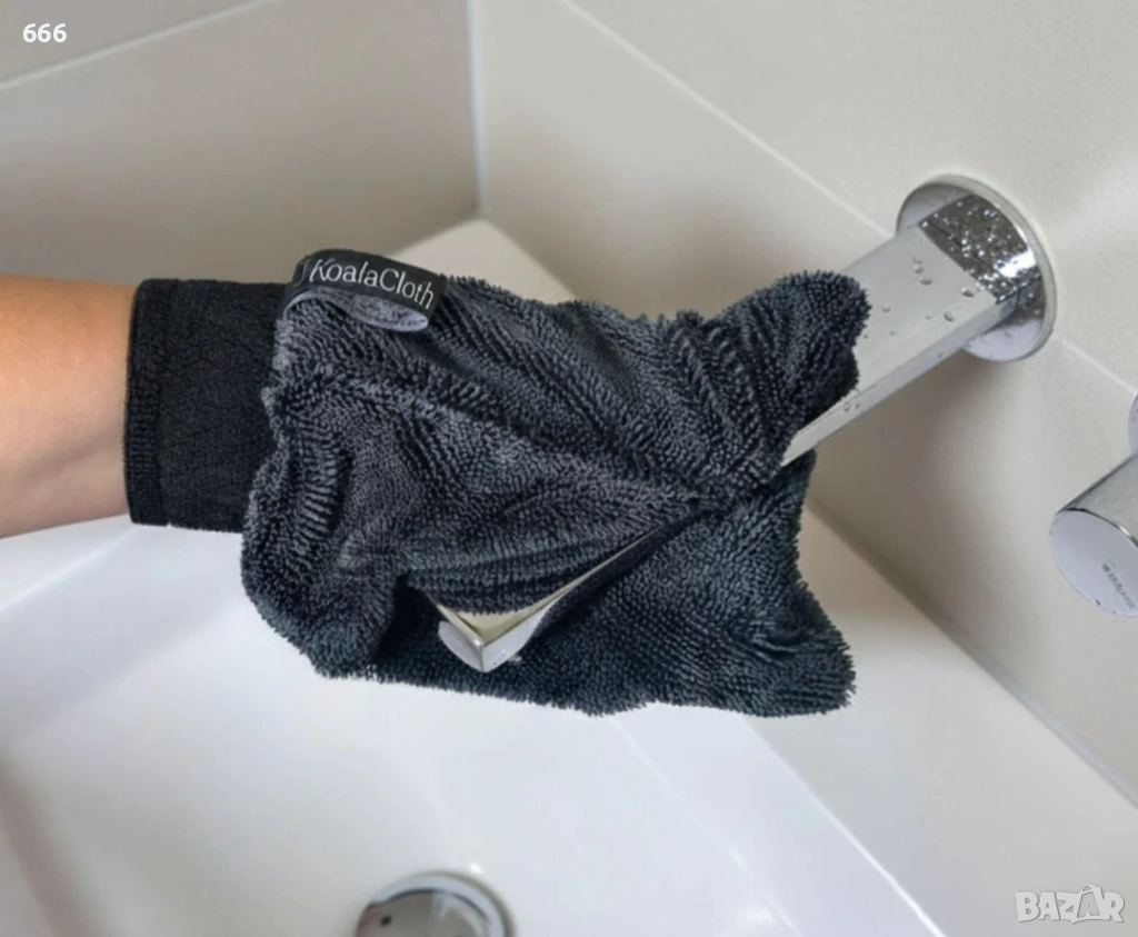 KoalaGlove е специално разработена за изсушаване на плочки, стъклени врати, кранове и огледала без ивици и замърсявания .