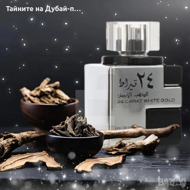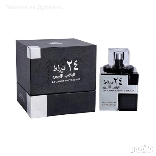 Lattafa 24 Carat White Gold е унисекс луксозен аромат от категория Eau de Parfum – истински израз на изтънченост, сила и стил. Пръв се усеща експлозивен взрив от свежест: сочен бергамот и деликатна портокалова цвят образуват едновременно свеж и изтънчен старт. След това ароматът се развива към сърце, в което се срещат подправки и цветя — сочен индийски орех, меката лавандула, живият розов пипер и изисканата здравец. Тази комбинация придава текстура, характер и леко пикантен шик. Базата е дълбоко дървесна и ориентална: ветивер, тонка боб и агарово дърво (уд) оформят мек, топъл и траен шлейф, който остава върху кожата, дрехите и в паметта.