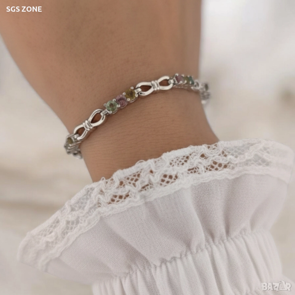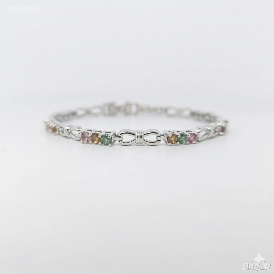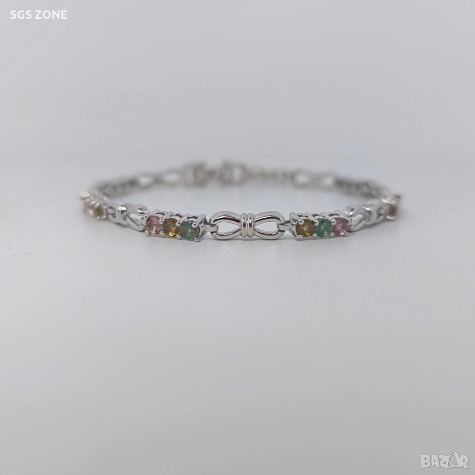 Ръчно изработена сребърна гривна с мулти турмалин → Обява 52580837