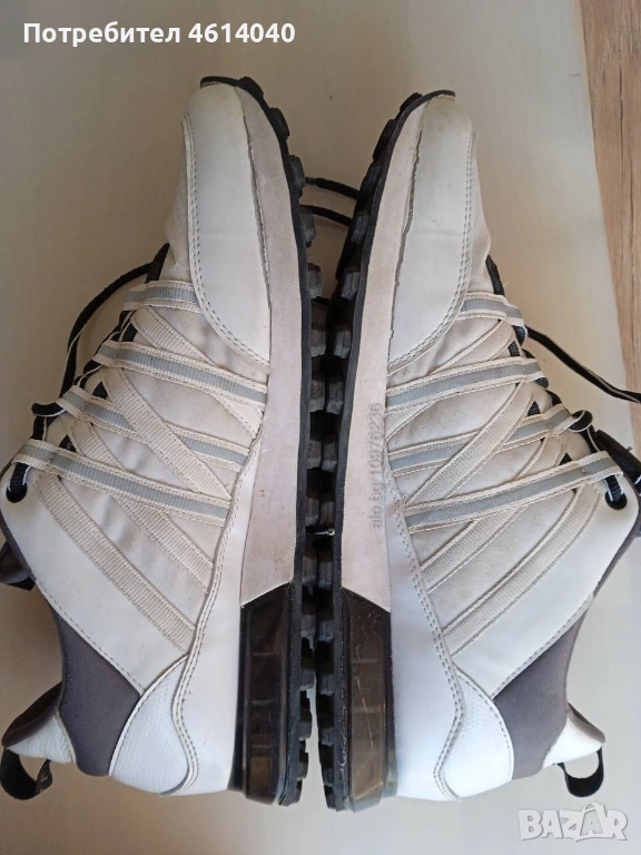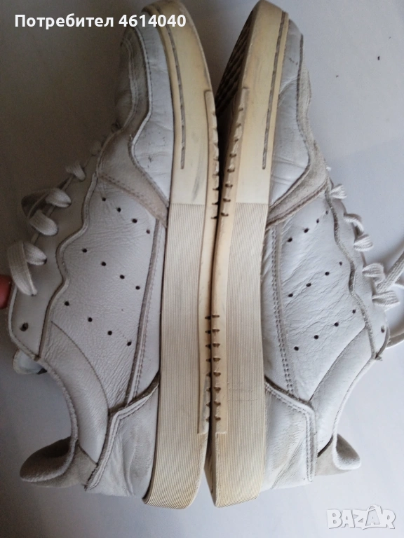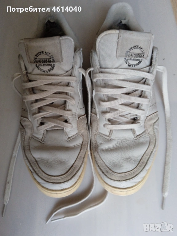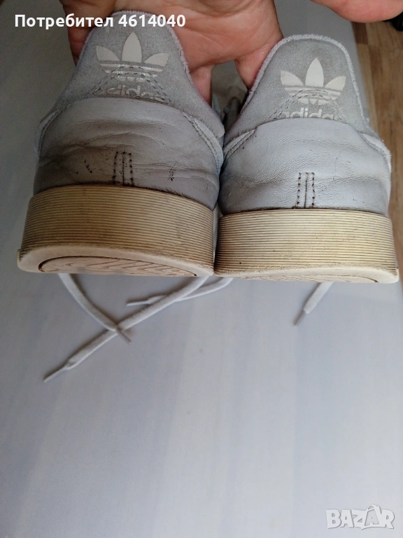 2) Снимки 7-11 Обувки Маратонки Адидас размер 43,5. Стелката 28,3 см. Хигиенично чисти са. Обувките обработени, стелките изпрани са. Забележка - вижте снимка 3. Естествена кожа отгоре. Цвятът е бяло-сив. Цена 6 евро.
