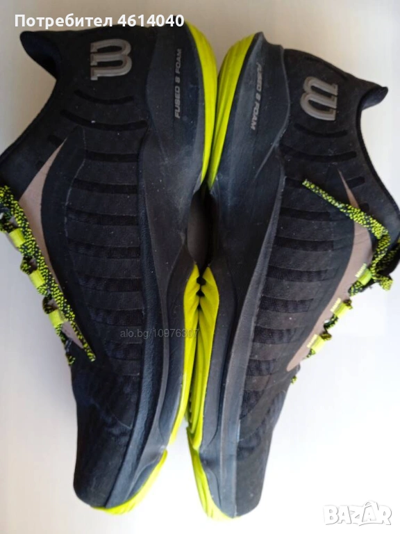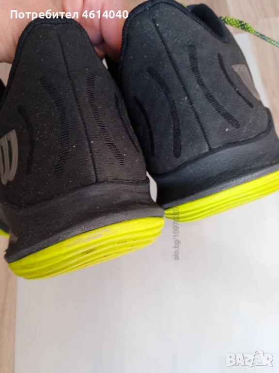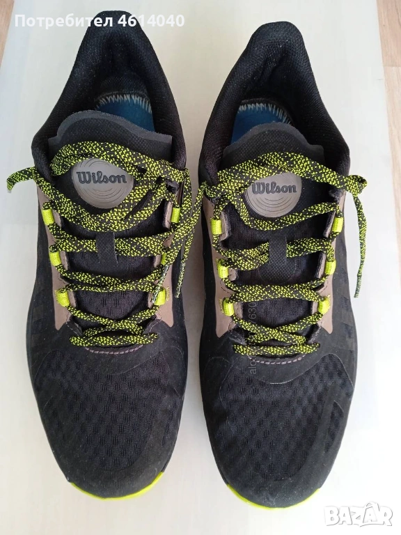 3) Снимки 12-18 Снимки Обувки Маратонки Wilson 44 / 28,5 см. Без стелки. Другото е здраво. Хигиенично чисти са, готови за употреба. Цена 44 евро.