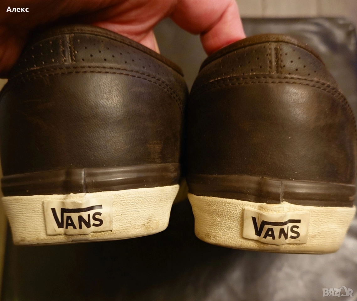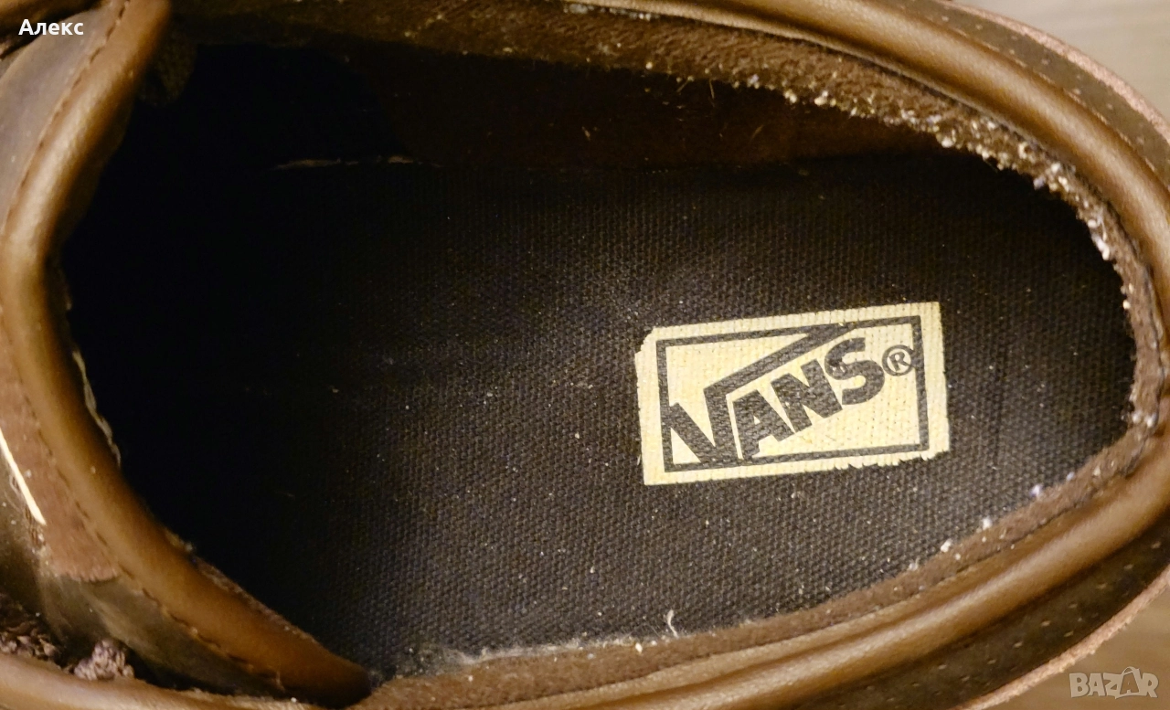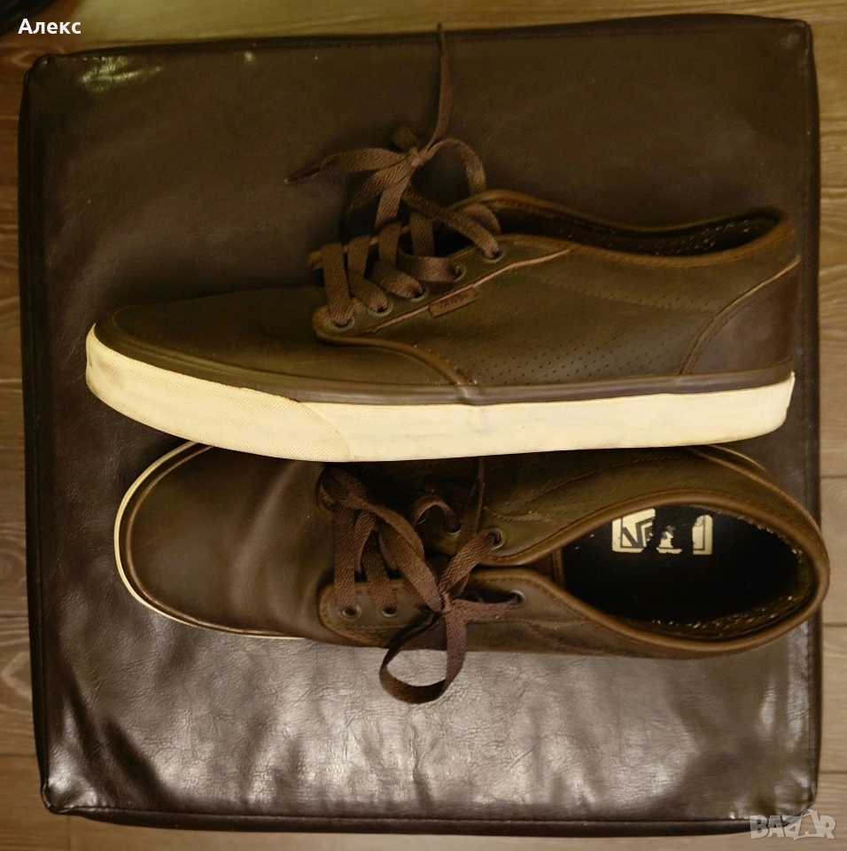 Мъжки кожени гуменки VANS, тъмно маслинено зелени с кафяв кант, №47 → Обява 52581651