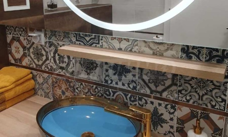 Жилището е новообзаведено по индивидуален дизайн и не е отдавано под наем. Разполага с пералня, съдомиялна машина, фурна, телевизор, градински мебели, 2 климатика Daikin с опция за отопление. Санитарният фаянс в банята е Roca и Tres.