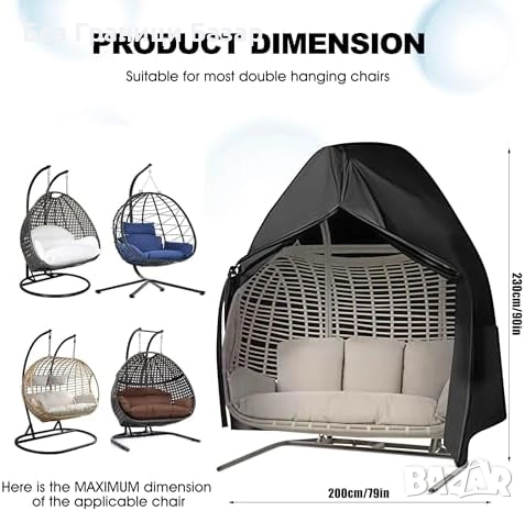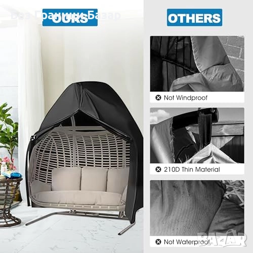 Ново Покривало Калъф за висящ градински стол яйце, ветроустойчив и UV защита