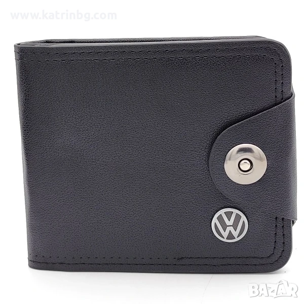 Портмоне в черно: изработено от еко кожа с магнитно закопчаване, седем отделения за карти и визитки.