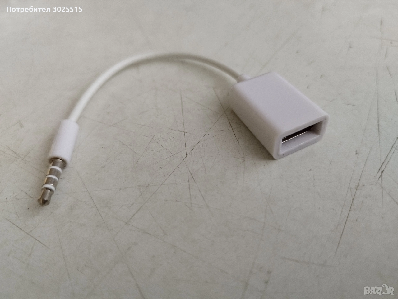 Бял преходен кабел AUX към USB чисто нов - 10лв.