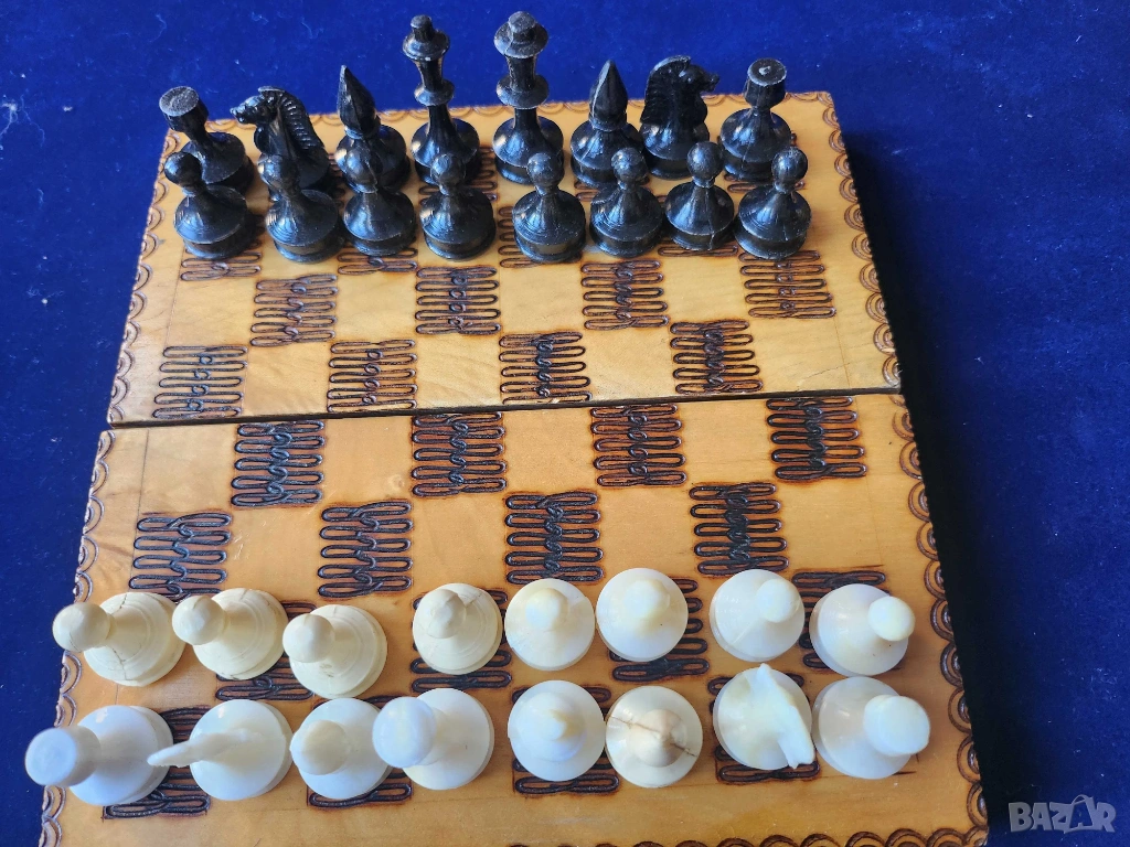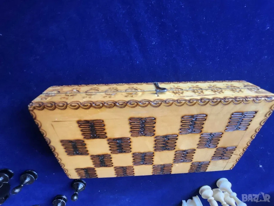 2) също малък пирографиран шах - комплект с фигурите.