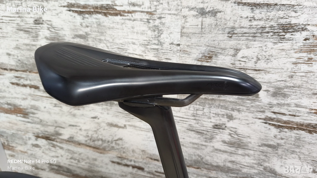 13. Седалка - Fi:zi'k Argo Carbon, с карбонови релси и карбонова основа, 140 мм ширина, с някои протривания ;