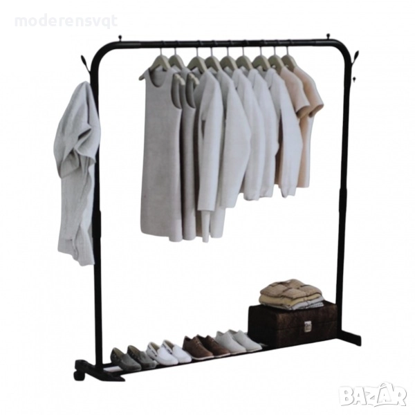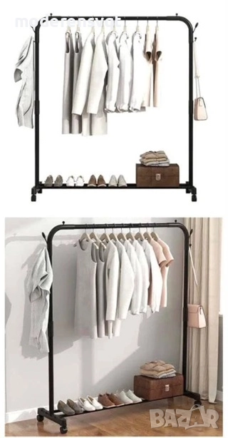 Поставката е подходяща за поставяне в спалнята, антрето или дори в дрешниците, за организиране и излагане на дрехи и обувки по подреден начин.