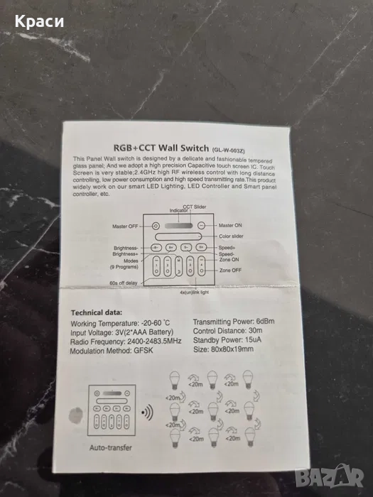 Стилен тъч панел за LED осветление - RGB+CCT, безжично управление, снимка 1 - Други - 52583897 Стилен тъч панел за LED осветление - RGB+CCT, безжично управление, снимка 2 - Други - 52583897 Стилен тъч панел за LED осветление - RGB+CCT, безжично управление, снимка 3 - Други - 52583897 1/3