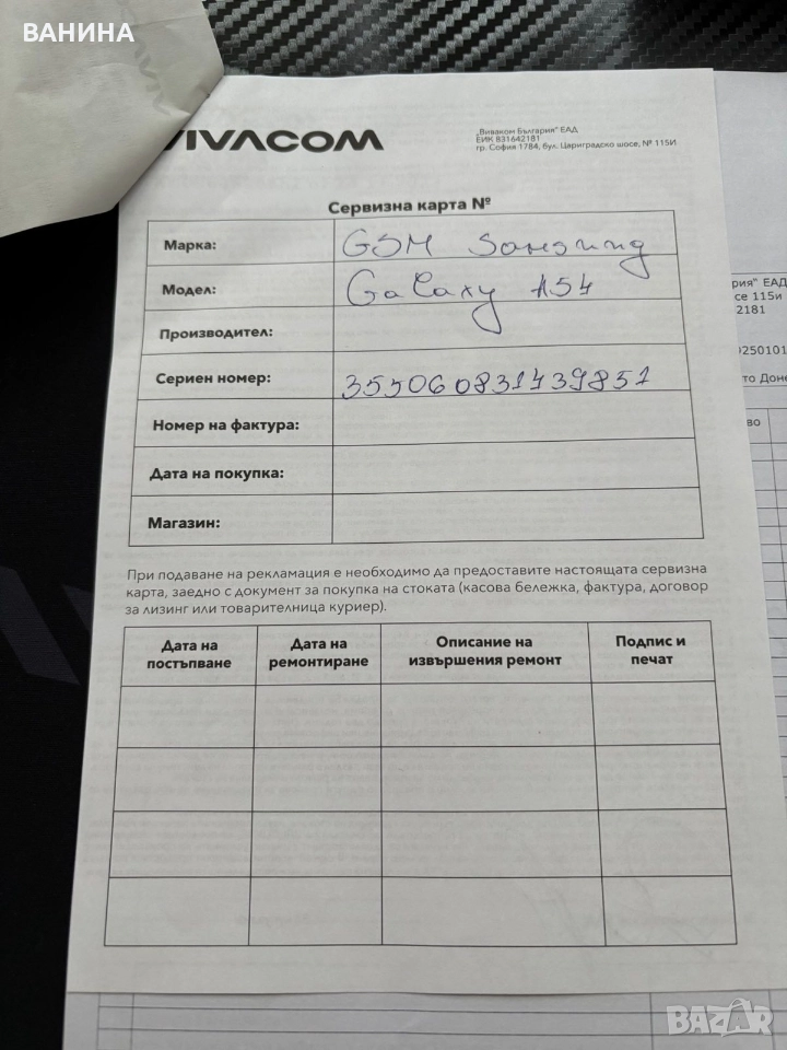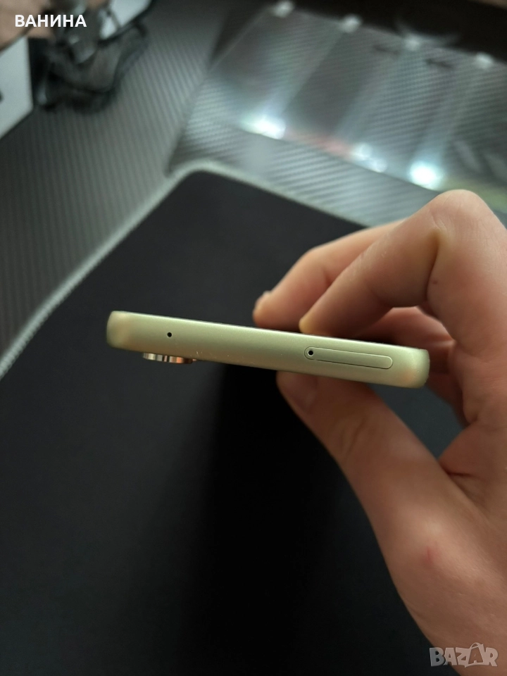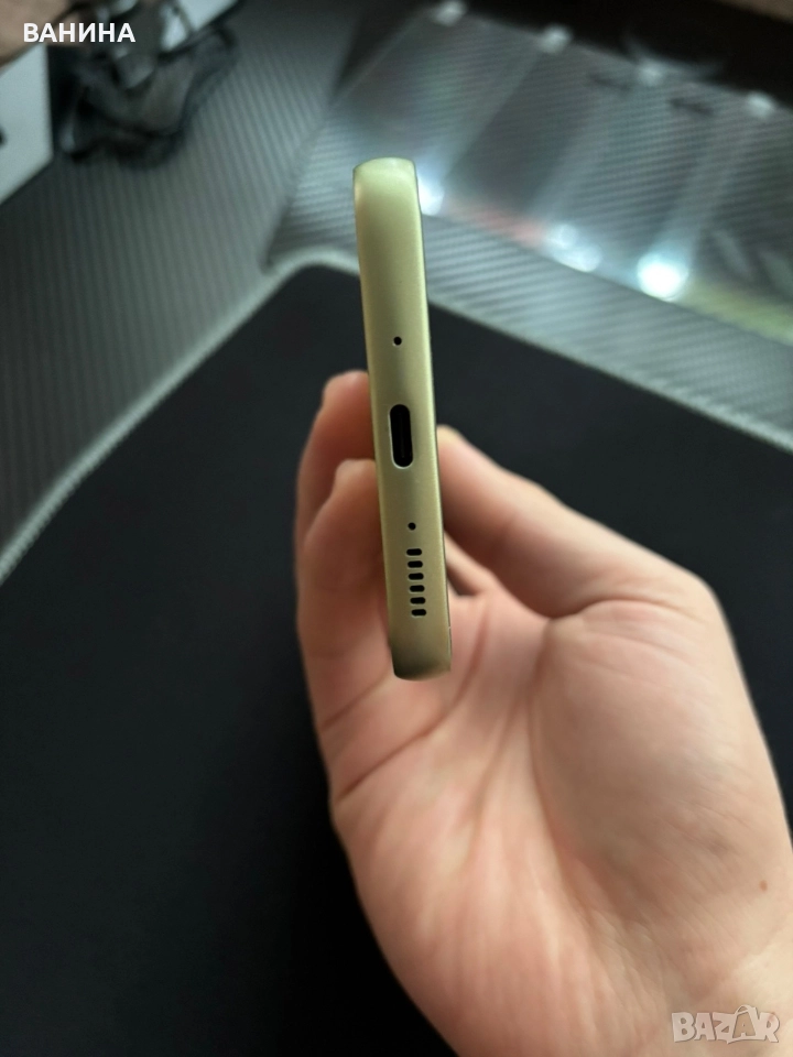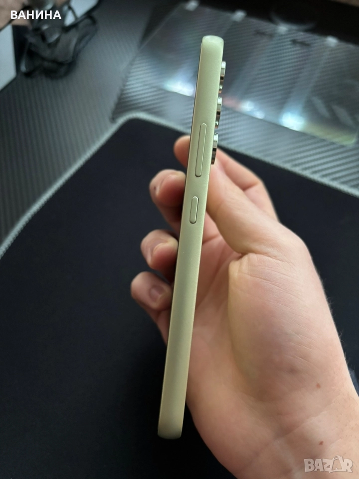Телефона е в перфектно състояние, неразличим от нов. Работи с всички оператори. От момента на закупуване е поставен протектор на стъклото и гърба. Продава се с кутия и кабел за зареждане. Без бартерии. ОСНОВНИ ХАРАКТЕРИСТИКИ Тип телефон Смартфон SIM слотове Dual SIM Вид SIM карта Nano SIM Операционна система Android Свързаност Bluetooth Wi-Fi GPS NFC Версия Bluetooth 5.3 Версия на операционната система Android 13 Модел процесор Samsung Exynos 1380 Брой ядра 8 Честота 2.4 GHz 2 GHz Сензори Акселерометър Жироскоп Пръстови отпечатъци Сензор за близост Светлинен сензор Съдържание пакет Телефон SIM ключ USB кабел за данни тип C Цвят Зелен Размери 76.7 x 8.2 x 158.2 мм Тегло 202 g SAR (W/кг) Глава: 0,693 W/kg Тяло: 1338 W/kg Година на лансиране 2023 Технология 2G 4G 3G 5G Защита Прахоустойчив Пръски ДИСПЛЕЙ Размери екран 6.4 inch Тип дисплей Super AMOLED Резолюция (пиксели) 1080 x 2340 Характеристики на дисплея 16 милиона цвята 120 Hz FHD+ ПАМЕТ Вътрешна памет 256 GB RAM памет 8 GB Memory card slot MicroSD СВЪРЗВАНЕ Wi-Fi стандарт 802.11 a/b/g/n/ac/ax Портове USB Type C ВИДЕО Брой камери 3 Резолюция на основна камера 12 MP Ultrawide 5 MP Macro 50 MP Wide Резолюция на вторична камера 32 Mpx Видео резолюция Full HD 4K Светкавица Да БАТЕРИЯ Капацитет батерия 5000 mAh Към телефона има 3 броя кейс, като единия от тях е със стикер за ЕМП защита, против радиация за мобилни телефони, неутрализатор за защита против радиация и 4 броя стъклени протектори. Закупен от офис на Виваком и притежава сериен номер, както се вижда на снимката. Дата на закупуване: 24.12.2023г. Изпращам с преглед и тест по желания от вас куриер!