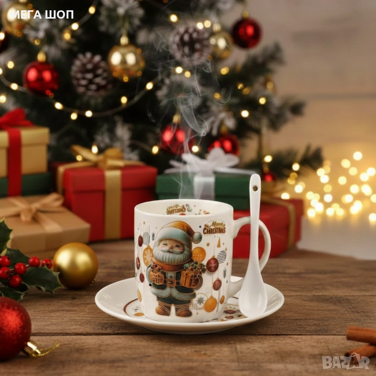 Коледна керамична чаша с капак и лъжица – уют за всяка сутри → Обява 52583937