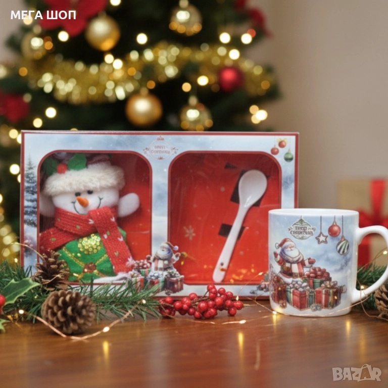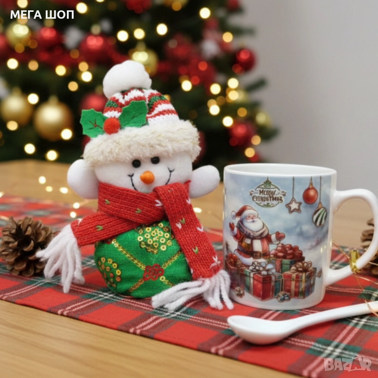 Празничен подаръчен комплект с чаша, лъжичка и снежен човек – готов за подаряване → Обява 52584017