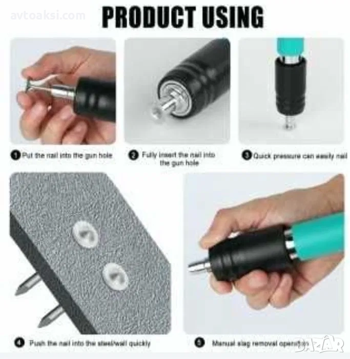 Ръчен пистолет за забиване на пирони в бетон, метал, керамика и др. Лесен за използване, универсален и ефективен инструмент.