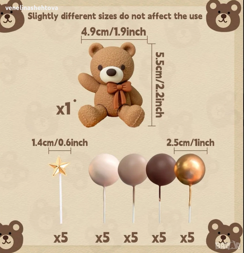 Фигурка мече с кафява папионка топчета на тел от стиропор звездички за декорация на торта , снимка 1 - Други - 52584453 Фигурка мече с кафява папионка топчета на тел от стиропор звездички за декорация на торта , снимка 2 - Други - 52584453 Фигурка мече с кафява папионка топчета на тел от стиропор звездички за декорация на торта , снимка 3 - Други - 52584453 1/3