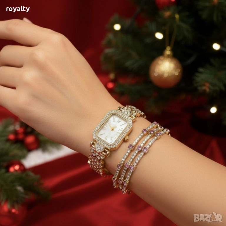 Елементи в комплекта: 1 часовник + 3 гривни;