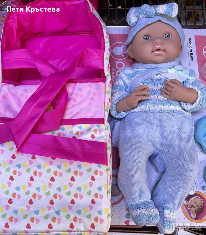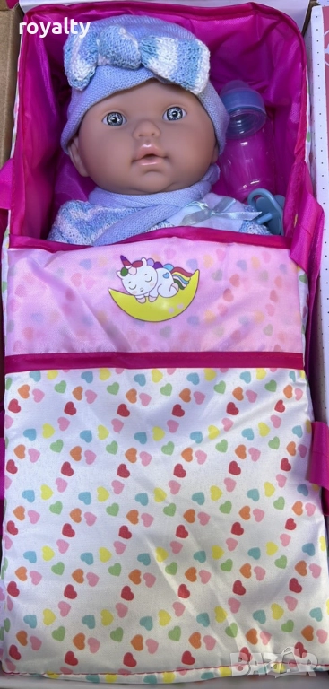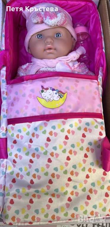 Кукла бебе с пълен комплект – Шише, пижама, легълце и аксесоари - 42 см - НА БЪЛГАРСКИ