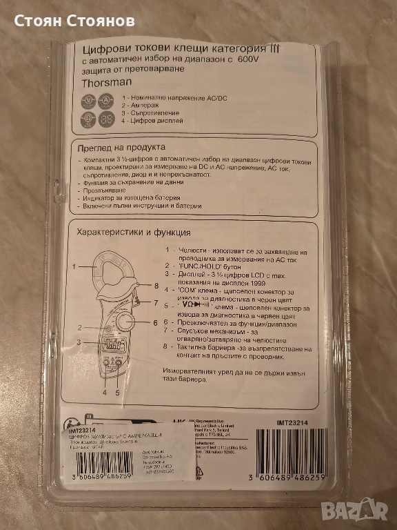 Амперклещите IMT23214 Thorsman са иновативен уред с функции, които позволяват на потребителите да работят удобно, без да имат обширни познания в областта на електрониката и електротехниката. Амперклещите са идеален инструмент за домакинства, любители и електротехници. Служат за интелигентно измерване големината на токa в електрически инсталации. Токовите клещи измерват още величини като AC/DC напрежение, съпротивление, тест на диод и изпитване на непрекъснатост.