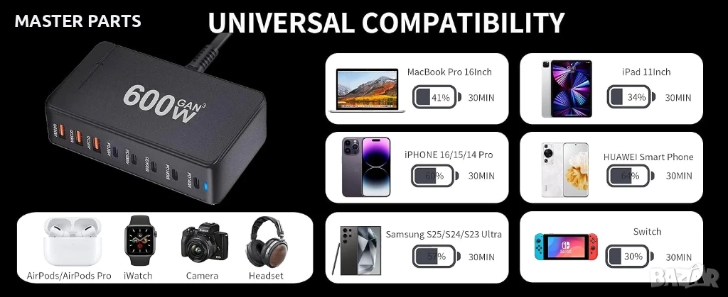 Перфектен за дома, офиса или пътуване: Едно устройство, което ги зарежда всички – бързо, безопасно и ефективно.