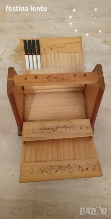 Дървена кутия за цигари, снимка 1 - Антикварни и старинни предмети - 52585288 Дървена кутия за цигари, снимка 2 - Антикварни и старинни предмети - 52585288 Дървена кутия за цигари, снимка 3 - Антикварни и старинни предмети - 52585288 Дървена кутия за цигари, снимка 4 - Антикварни и старинни предмети - 52585288 Дървена кутия за цигари, снимка 5 - Антикварни и старинни предмети - 52585288 Дървена кутия за цигари, снимка 6 - Антикварни и старинни предмети - 52585288 Дървена кутия за цигари, снимка 7 - Антикварни и старинни предмети - 52585288 1/7
