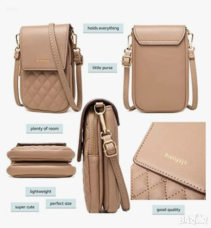 Красива малка чанта: практичен размер и модерен дизайн, много място за съхранение въпреки компактния си размер. Размери: 12,5 см x 7 см x 19 см (дължина x ширина x височина). Презрамката е достатъчно дълга за удобно носене и се закопчава с цип. Дължината се регулира индивидуално. Можете да носите чантата през рамо или през тялото си.