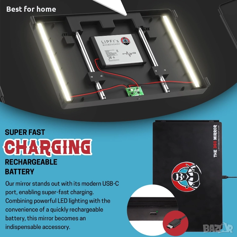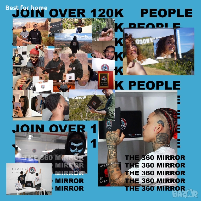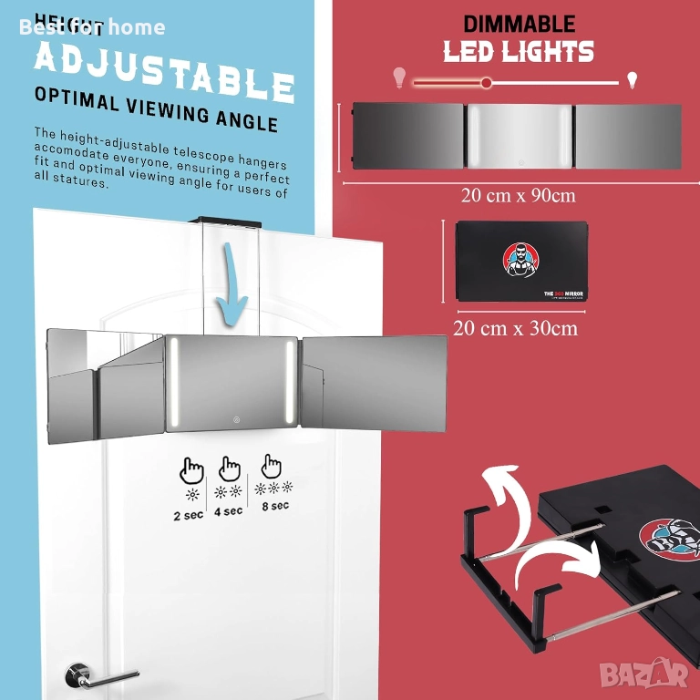 огледало - 3-странно огледало за самостоятелно подстригване - Регулируемо трислойно огледало за бръснари, за да подстригвате сами косата си - Трислойна система за самостоятелно подстригване за мъже - Тристранно огледало за подстригване (с LED).