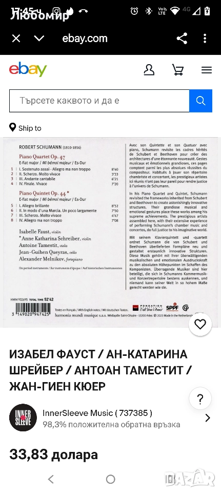 В своите „Квартет и квинтет за пиано“ Шуман преразглежда рамките, наследени от Шуберт и Бетовен, за да създаде удивително новаторски структури. Техните грандиозни музикални и емоционални жестове поставят тези произведения сред върховните му постижения. Събраните тук престижни артисти, с богатия си опит в изпълнението на камерната музика и концертите на Шуман, отдават пълна справедливост на неговия въображаем свят.