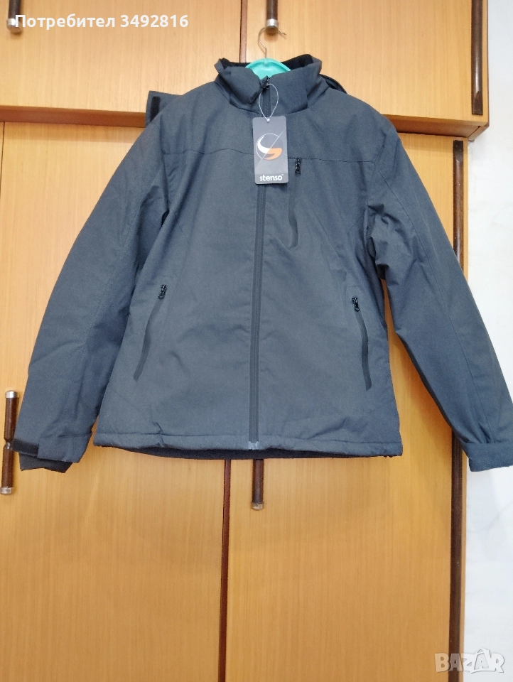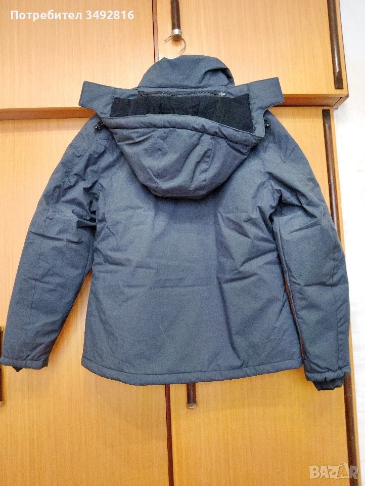 Продавам якето от снимките. Много леко и топло. Ширина между мишниците - 55 см., дължина на ръкава - 64 см., дължина от рамото до долу - 66 см. Цветът му е тъмно сив, на снимките се разминава.