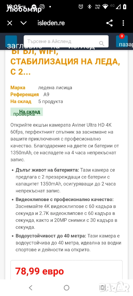 Водоустойчивост до 40 метра: Тази камера е водоустойчива до 40 метра, идеална за водни спортове и дейности на открито