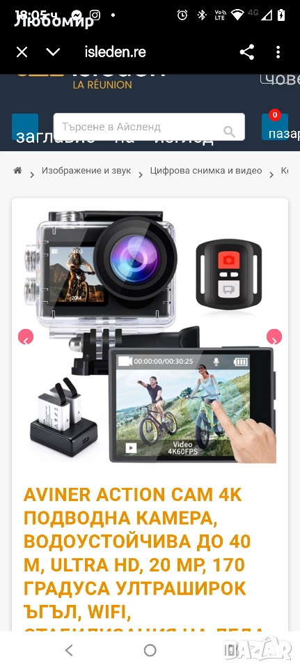Action Cam 4K Подводна камера 40 м Водоустойчива Ultra HD 20MP камера 170 градуса ултраширок ъгъл WiFi камера Стабилизация на лед с двойна батерия 1350 mAh.Открийте екшън камерата Aviner Ultra HD 4K 60fps, перфектният спътник за заснемане на вашите приключения с професионално качество. Благодарение на двете си батерии от 1350mAh, се насладете на 4 часа непрекъснат запис.
