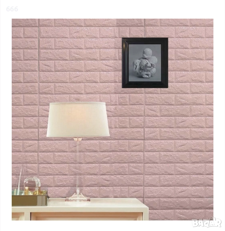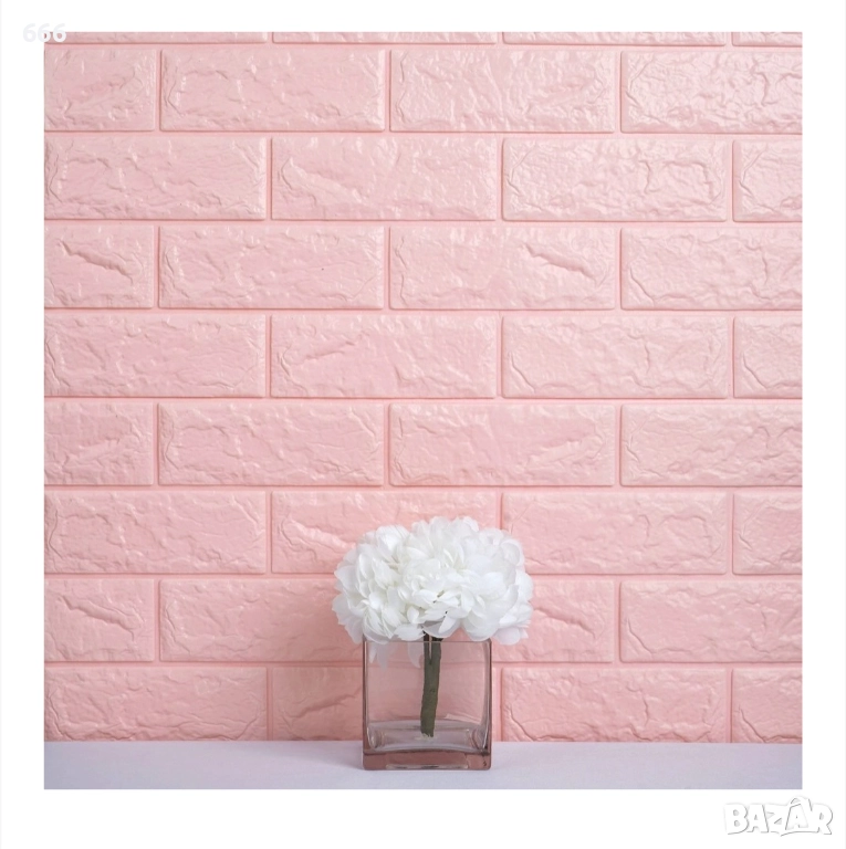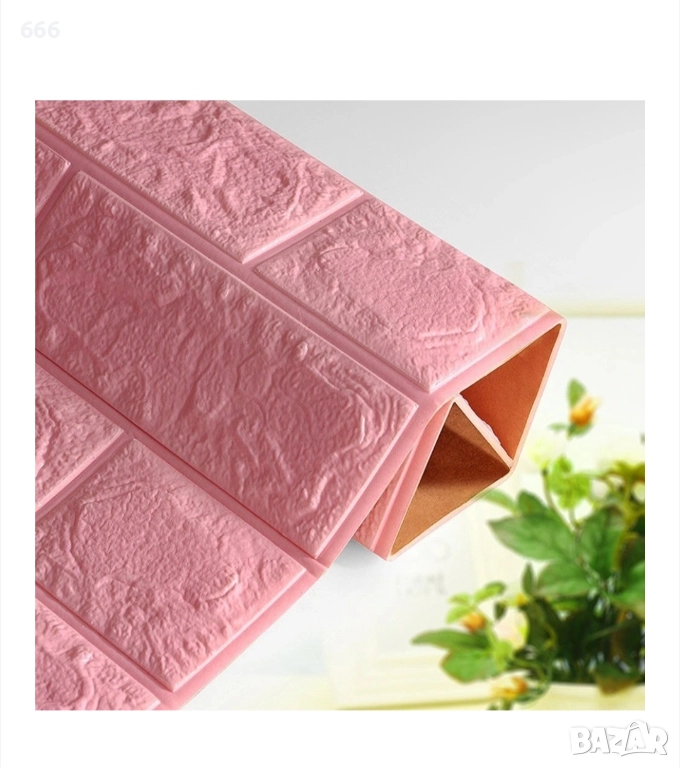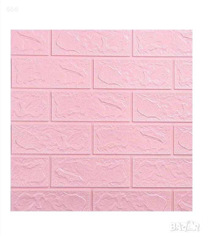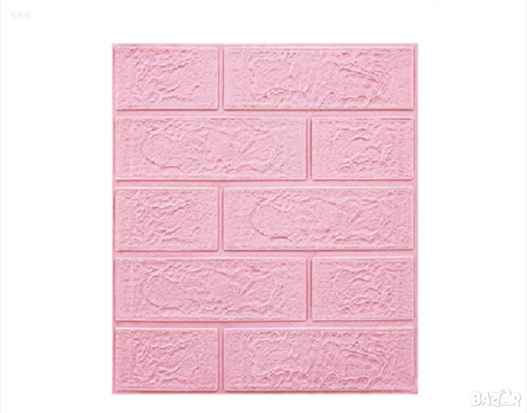 Комплект от 10 3D тапетни плочки, Cyrax, 35 x 38 см, дебелина 3 мм, полиетилен, тухлен мотив, покрита площ 1,33 кв.м, розов.