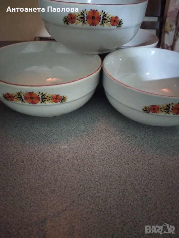 Продавам четири купи за супа и три чинии за основно с шарка майски венец