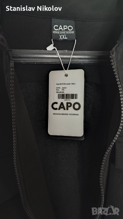продавам Ново яке Capo в размер XXL, черно. Стилно и елегантно, подходящо за всякакви поводи.
