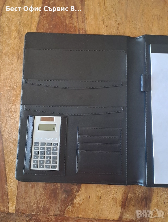 папка луксозна със соларен калкулатор Mline кожена черна A4 → Обява 52586542