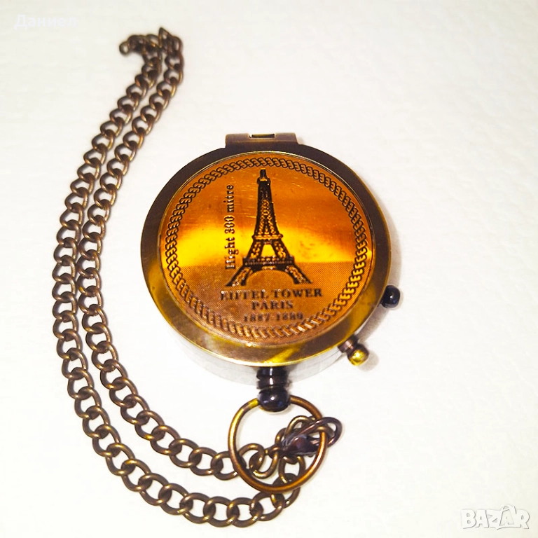 Представяме ви стилен бронзов компас с детайлна гравюра на Айфеловата кула, изработен с внимание към всеки елемент. Компасът е съчетание между функционалност и елегантен дизайн, което го превръща в прекрасен подарък за любители на пътешествия, колекционери или хора, които ценят красивите предмети с характер.