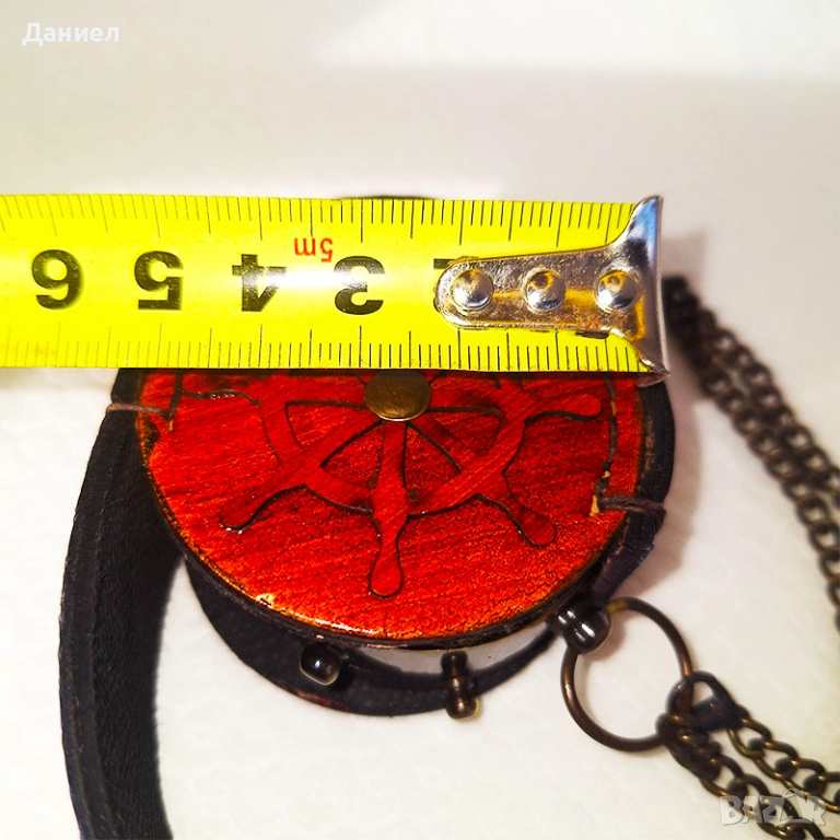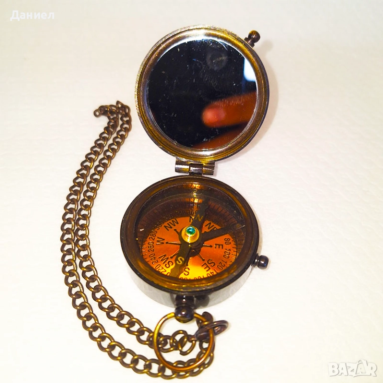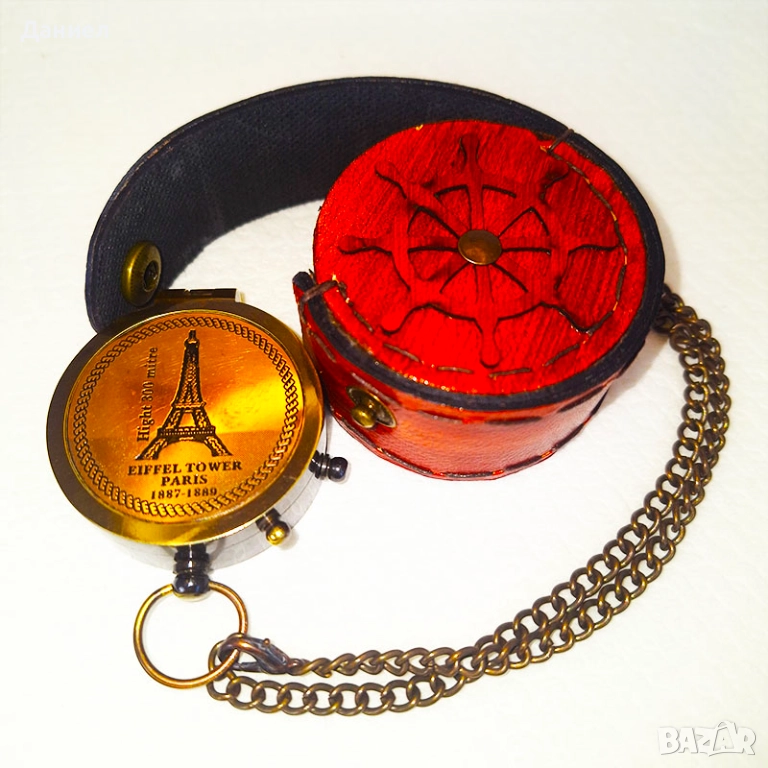 Уредът идва в качествен кожен калъф, който го предпазва и добавя още повече класическо излъчване. Този компас е не просто навигационен инструмент, а истинско произведение на изкуството – перфектен сувенир, който привлича внимание и създава атмосфера на приключения и романтика.