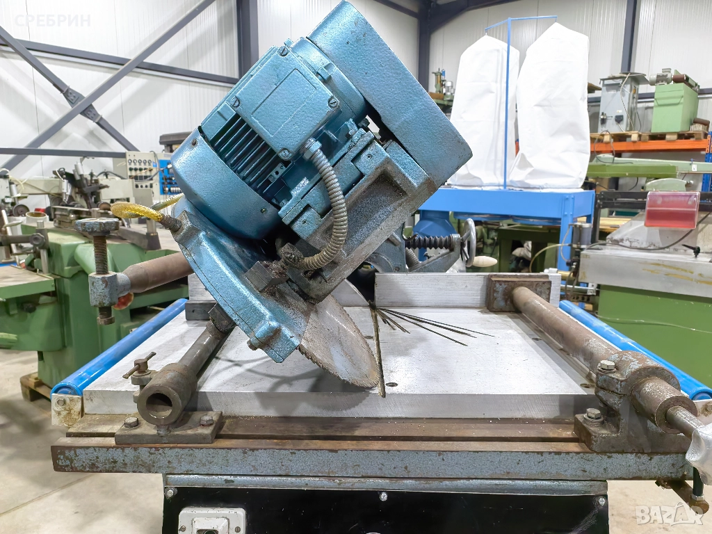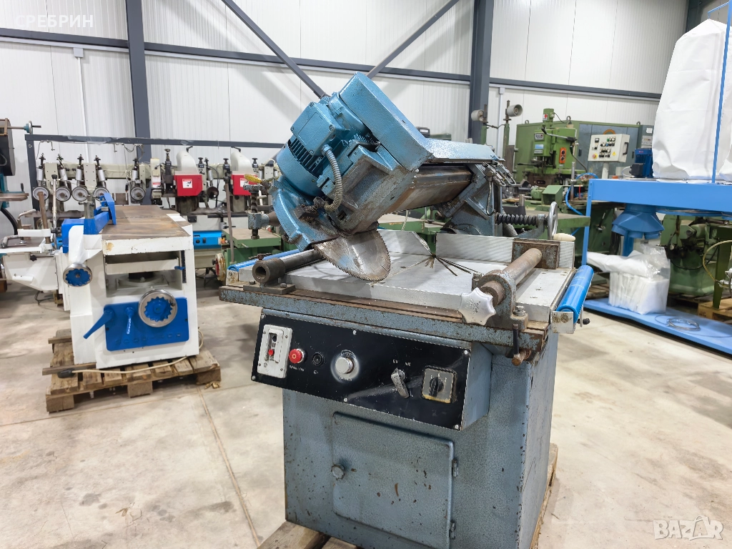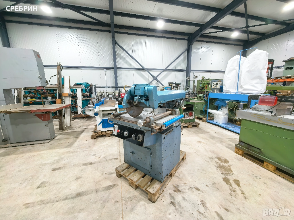 В наличност автоматична радиална пендула с ход на рамото 600мм., височина на рязане 160мм. Диск 400мм., мотор 4кв. Автоматичен ход напред с пневматичен цилиндър + наклон на 45 градуса + завъртане на рамото на 44 градуса. Машината е подходяща за рязане на дърво, алуминий и пвц дограма. За повече информация по телефона.