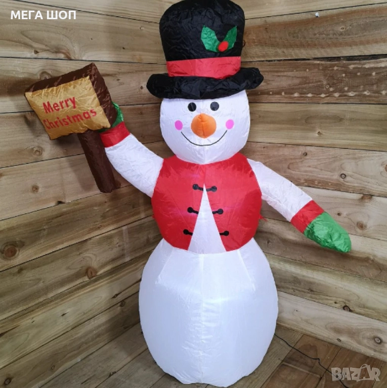 Този висок анимиран надуваем снежен човек, носещ ръкавици и шапка, е забавен и креативен начин да украсите двора си по време на празничния сезон.;