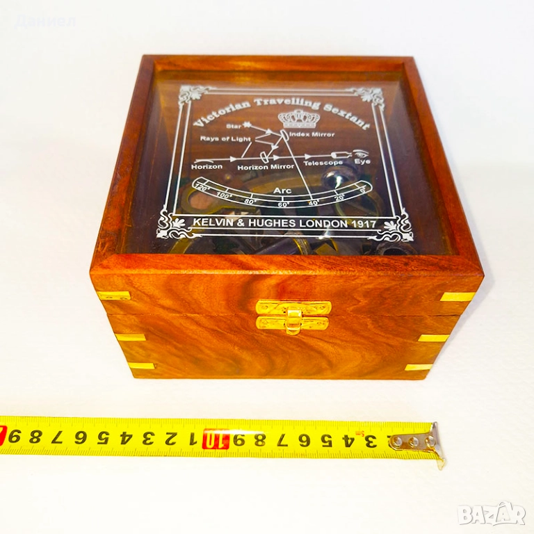 Изработен от висококачествен бронз, секстантът е прецизна реплика на старинните навигационни уреди, използвани от мореплавателите през вековете. Поднесен в красиво лакирана дървена кутия, той се превръща в идеален акцент за офис, кабинет, дневна или морска колекция.